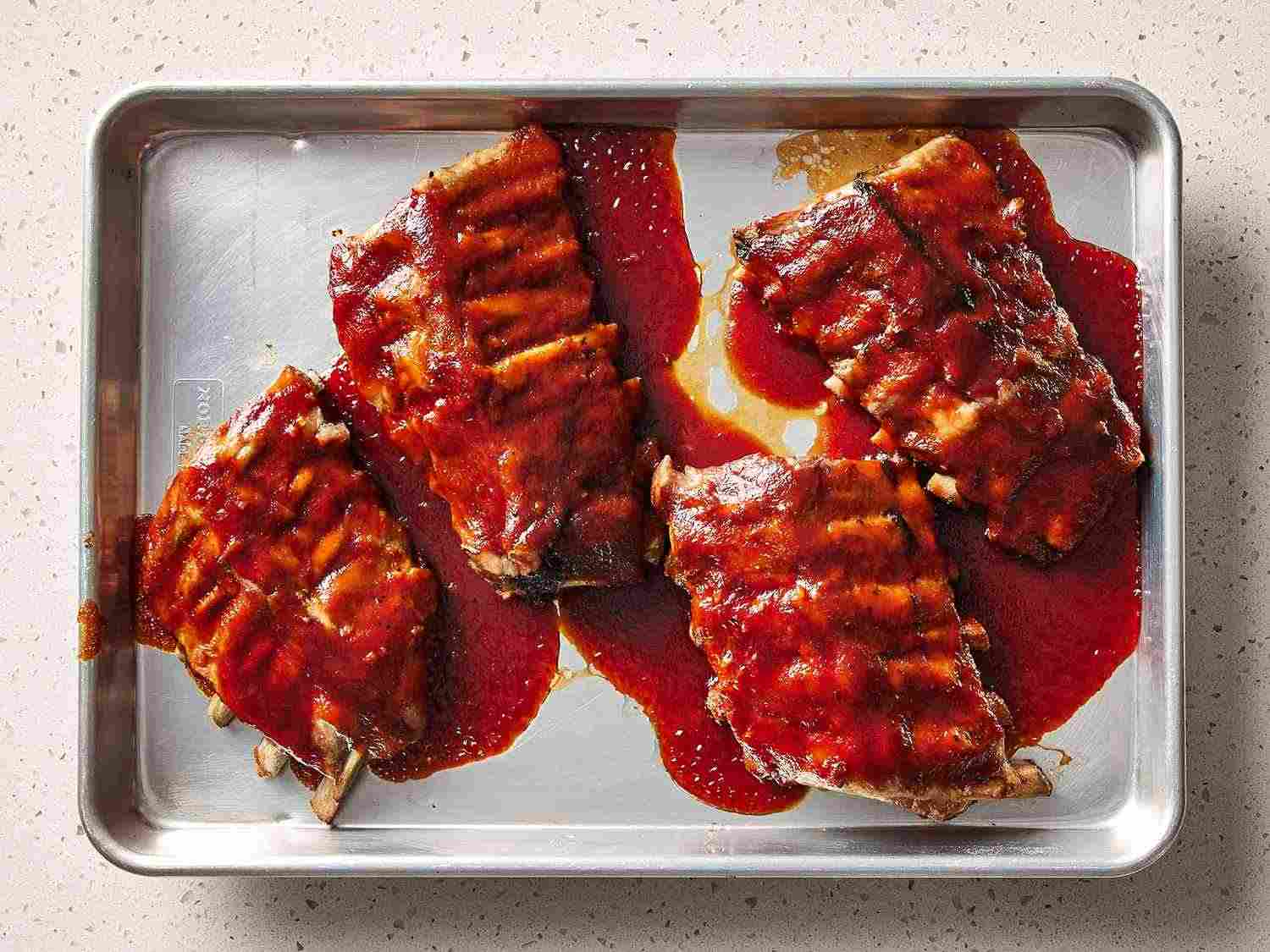 - Step 6:Bake ribs in the preheated oven until sauce caramelizes and sticks to meat, 10 to 15 minutes. Dotdash Meredith Food Studios